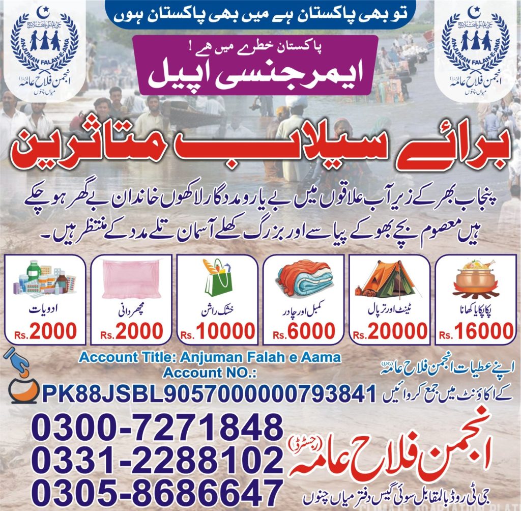 Anjuman Falah e Ama is a registered non-governmental organization dedicated to improving the lives of the residents of Tehsil Mian Channu. Our mission is to provide essential services and support to underprivileged communities, focusing on education, healthcare, Langar Khana, Flood Relief, Earthquake Relief, Rashan Programe, Awareness Seminars (Dengue, Covid, Smog, etc..) and social Services.